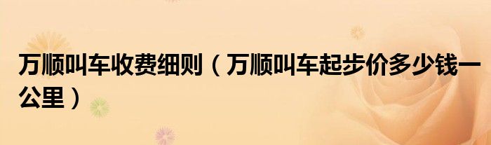 大家好,综合小编来为大家讲解下。万顺叫车收费细则,万顺叫车起步价多少钱一公里这个很多人还不知道,现在让我们一起来看看吧!