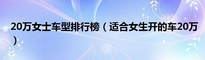 大家好,综合小编来为大家讲解下。20万女士车型排行榜,适合女生开的车20万这个很多人还不知道,现在让我们一起来看看吧!