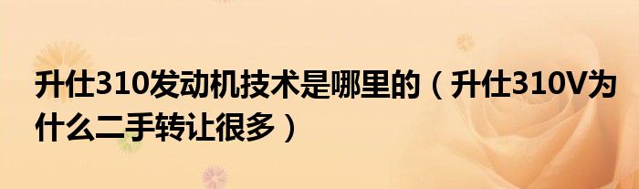 大家好,综合小编来为大家讲解下。升仕310发动机技术是哪里的,升仕310V为什么二手转让很多这个很多人还不知道,现在让我们一起来看看吧!