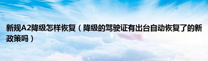 新规A2降级怎样恢复(降级的驾驶证有出台自动恢复了的新政策吗)