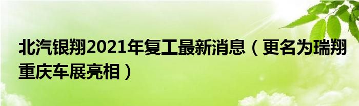 大家好,综合小编来为大家讲解下。北汽银翔2021年复工最新消息,更名为瑞翔重庆车展亮相这个很多人还不知道,现在让我们一起来看看吧!