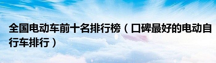 大家好,综合小编来为大家讲解下。全国电动车前十名排行榜,口碑最好的电动自行车排行这个很多人还不知道,现在让我们一起来看看吧!