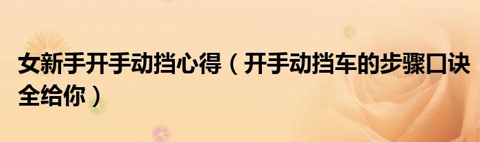 大家好,综合小编来为大家讲解下。女新手开手动挡心得,开手动挡车的步骤口诀全给你这个很多人还不知道,现在让我们一起来看看吧!