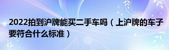 大家好,综合小编来为大家讲解下。2022拍到沪牌能买二手车吗,上沪牌的车子要符合什么标准这个很多人还不知道,现在让我们一起来看看吧!