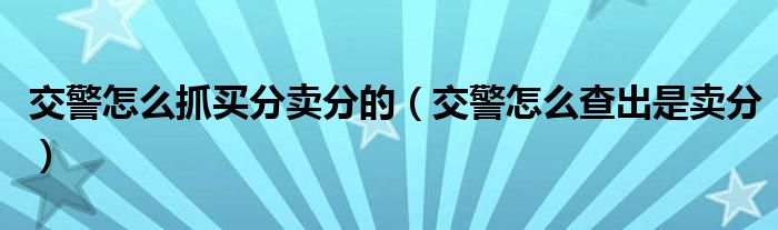 交警怎么抓买分卖分的(交警怎么查出是卖分)