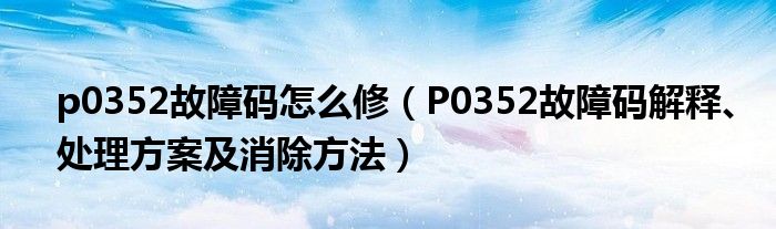 p0352故障码怎么修(P0352故障码解释、处理方案及消除方法)