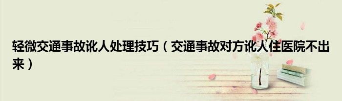大家好,综合小编来为大家讲解下。轻微交通事故讹人处理技巧,交通事故对方讹人住医院不出来这个很多人还不知道,现在让我们一起来看看吧!