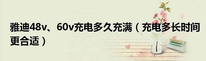 大家好,综合小编来为大家讲解下。雅迪48v、60v充电多久充满,充电多长时间更合适这个很多人还不知道,现在让我们一起来看看吧!