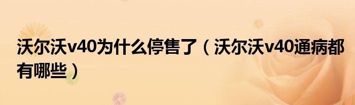 大家好,综合小编来为大家讲解下。沃尔沃v40为什么停售了,沃尔沃v40通病都有哪些这个很多人还不知道,现在让我们一起来看看吧!