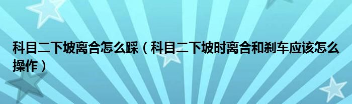 科目二下坡离合怎么踩(科目二下坡时离合和刹车应该怎么操作)