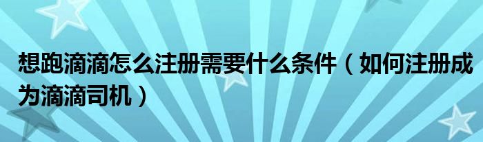 想跑滴滴怎么注册需要什么条件(如何注册成为滴滴司机)