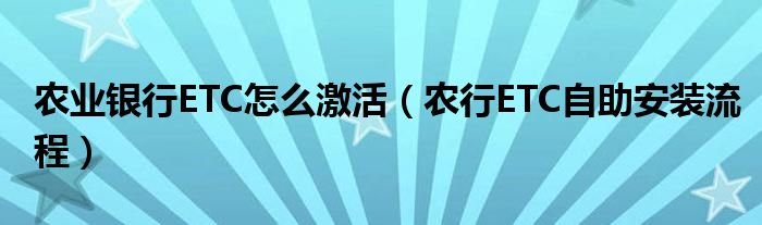 大家好,综合小编来为大家讲解下。农业银行ETC怎么激活,农行ETC自助安装流程这个很多人还不知道,现在让我们一起来看看吧!