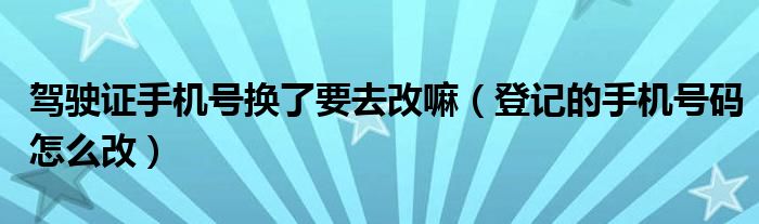 大家好,综合小编来为大家讲解下。驾驶证手机号换了要去改嘛,登记的手机号码怎么改这个很多人还不知道,现在让我们一起来看看吧!