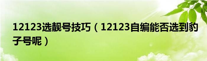 12123选靓号技巧(12123自编能否选到豹子号呢)