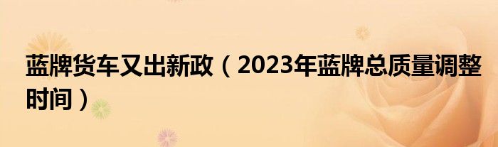 蓝牌货车又出新政(2023年蓝牌总质量调整时间)