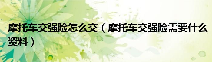 大家好,综合小编来为大家讲解下。摩托车交强险怎么交,摩托车交强险需要什么资料这个很多人还不知道,现在让我们一起来看看吧!