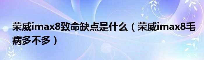 大家好,综合小编来为大家讲解下。荣威imax8致命缺点是什么,荣威imax8毛病多不多这个很多人还不知道,现在让我们一起来看看吧!