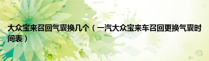 大家好,综合小编来为大家讲解下。大众宝来召回气囊换几个,一汽大众宝来车召回更换气囊时间表这个很多人还不知道,现在让我们一起来看看吧!