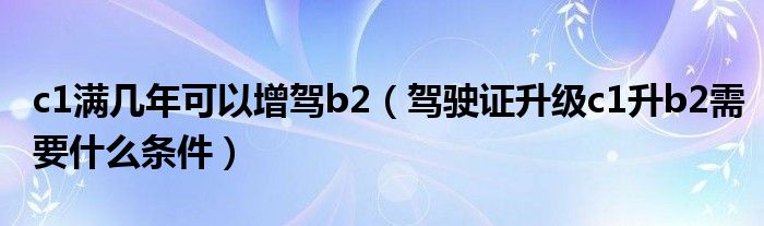 大家好,综合小编来为大家讲解下。c1满几年可以增驾b2,驾驶证升级c1升b2需要什么条件这个很多人还不知道,现在让我们一起来看看吧!