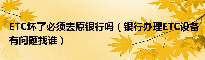 大家好,综合小编来为大家讲解下。ETC坏了必须去原银行吗,银行办理ETC设备有问题找谁这个很多人还不知道,现在让我们一起来看看吧!