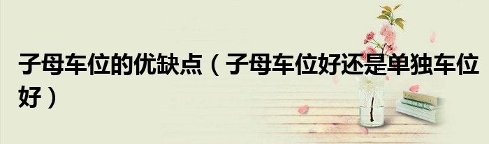 大家好,综合小编来为大家讲解下。子母车位的优缺点,子母车位好还是单独车位好这个很多人还不知道,现在让我们一起来看看吧!
