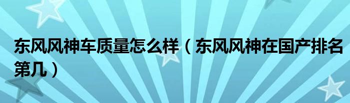 大家好,综合小编来为大家讲解下。东风风神车质量怎么样,东风风神在国产排名第几这个很多人还不知道,现在让我们一起来看看吧!