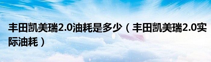 大家好,综合小编来为大家讲解下。丰田凯美瑞2.0油耗是多少,丰田凯美瑞2.0实际油耗这个很多人还不知道,现在让我们一起来看看吧!