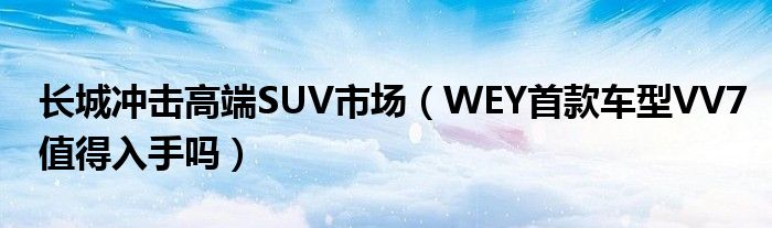 大家好,综合小编来为大家讲解下。长城冲击高端SUV市场,WEY首款车型VV7值得入手吗这个很多人还不知道,现在让我们一起来看看吧!