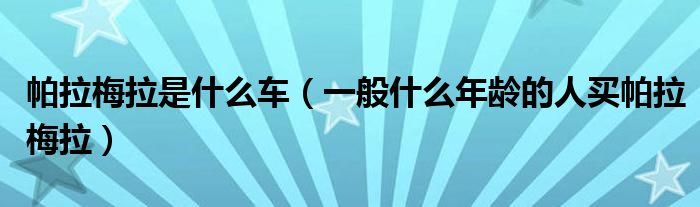 大家好,综合小编来为大家讲解下。帕拉梅拉是什么车,一般什么年龄的人买帕拉梅拉这个很多人还不知道,现在让我们一起来看看吧!