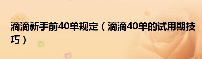 大家好,综合小编来为大家讲解下。滴滴新手前40单规定,滴滴40单的试用期技巧这个很多人还不知道,现在让我们一起来看看吧!