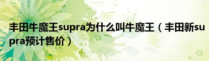 大家好,综合小编来为大家讲解下。丰田牛魔王supra为什么叫牛魔王,丰田新supra预计售价这个很多人还不知道,现在让我们一起来看看吧!