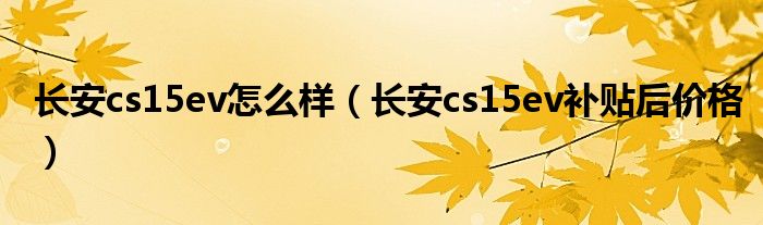 大家好,综合小编来为大家讲解下。长安cs15ev怎么样,长安cs15ev补贴后价格这个很多人还不知道,现在让我们一起来看看吧!