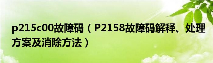 p215c00故障码(P2158故障码解释、处理方案及消除方法)