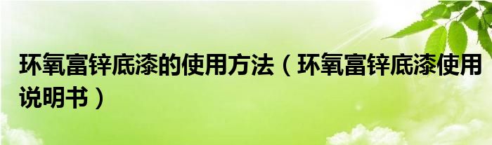 环氧富锌底漆的使用方法(环氧富锌底漆使用说明书)