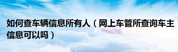 大家好,综合小编来为大家讲解下。如何查车辆信息所有人,网上车管所查询车主信息可以吗这个很多人还不知道,现在让我们一起来看看吧!