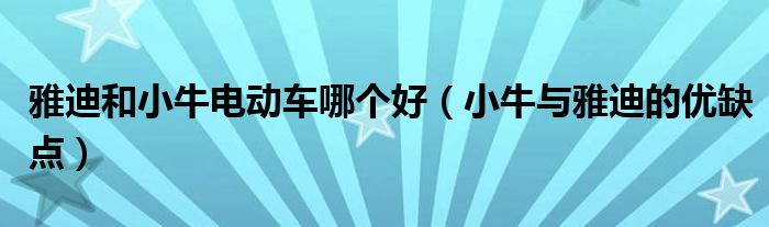 大家好,综合小编来为大家讲解下。雅迪和小牛电动车哪个好,小牛与雅迪的优缺点这个很多人还不知道,现在让我们一起来看看吧!