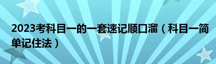 大家好,综合小编来为大家讲解下。2023考科目一的一套速记顺口溜,科目一简单记住法这个很多人还不知道,现在让我们一起来看看吧!
