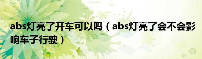 大家好,综合小编来为大家讲解下。abs灯亮了开车可以吗,abs灯亮了会不会影响车子行驶这个很多人还不知道,现在让我们一起来看看吧!