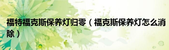 福特福克斯保养灯归零(福克斯保养灯怎么消除)
