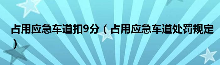 大家好,综合小编来为大家讲解下。占用应急车道扣9分,占用应急车道处罚规定这个很多人还不知道,现在让我们一起来看看吧!