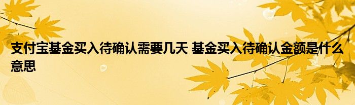 支付宝基金买入待确认需要几天 基金买入待确认金额是什么意思
