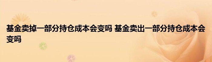 基金卖掉一部分持仓成本会变吗 基金卖出一部分持仓成本会变吗