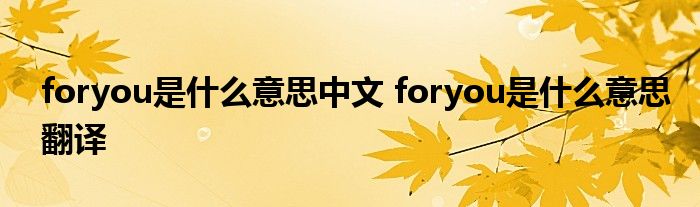 大家好,综合小编来为大家讲解下foryou是什么意思中文,foryou是什么意思翻译这个很多人还不知道,现在让我们一起来看看吧!